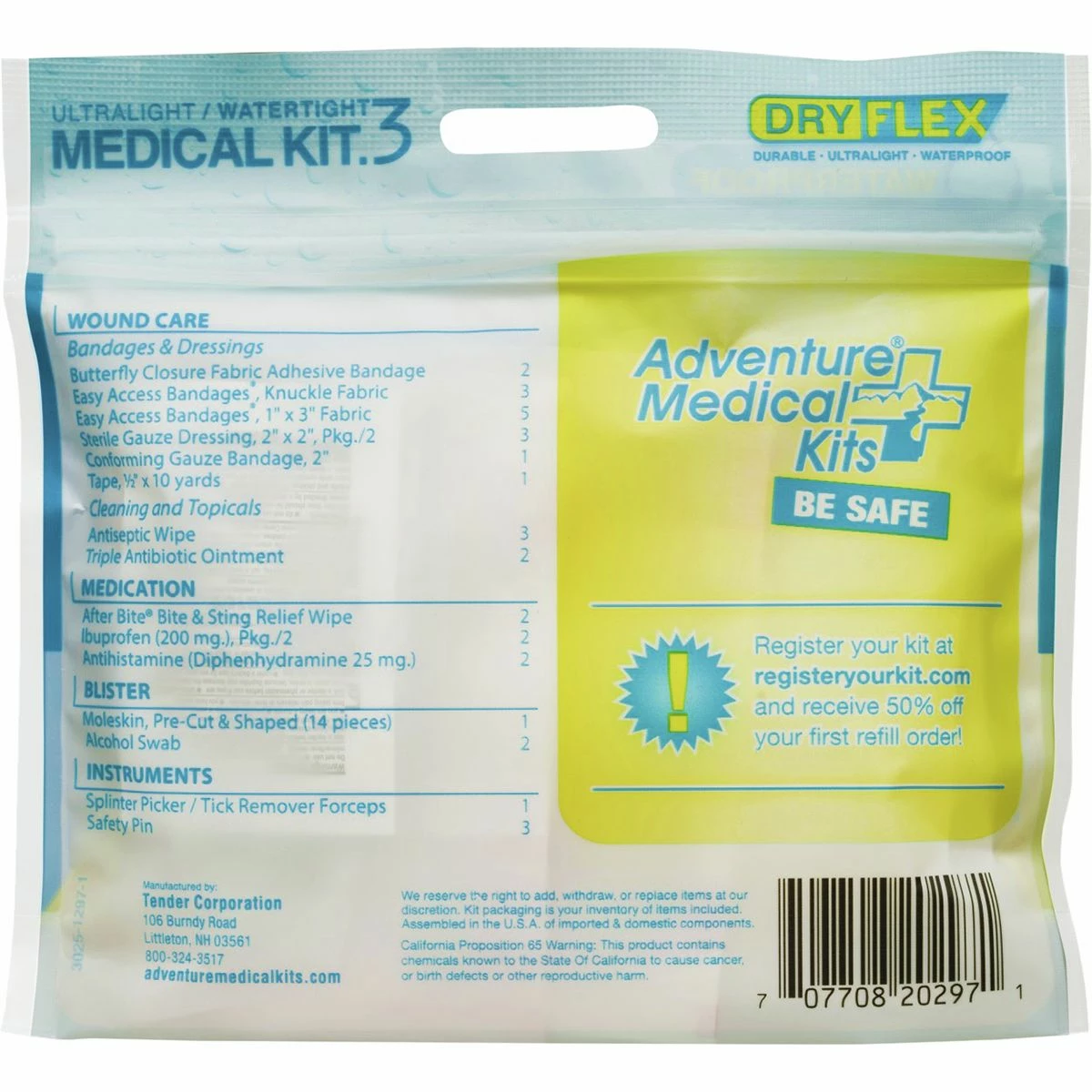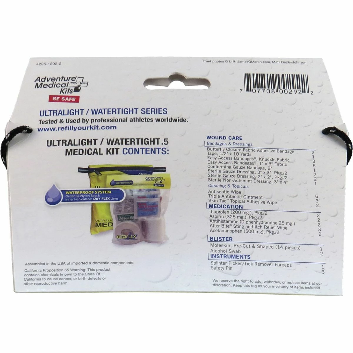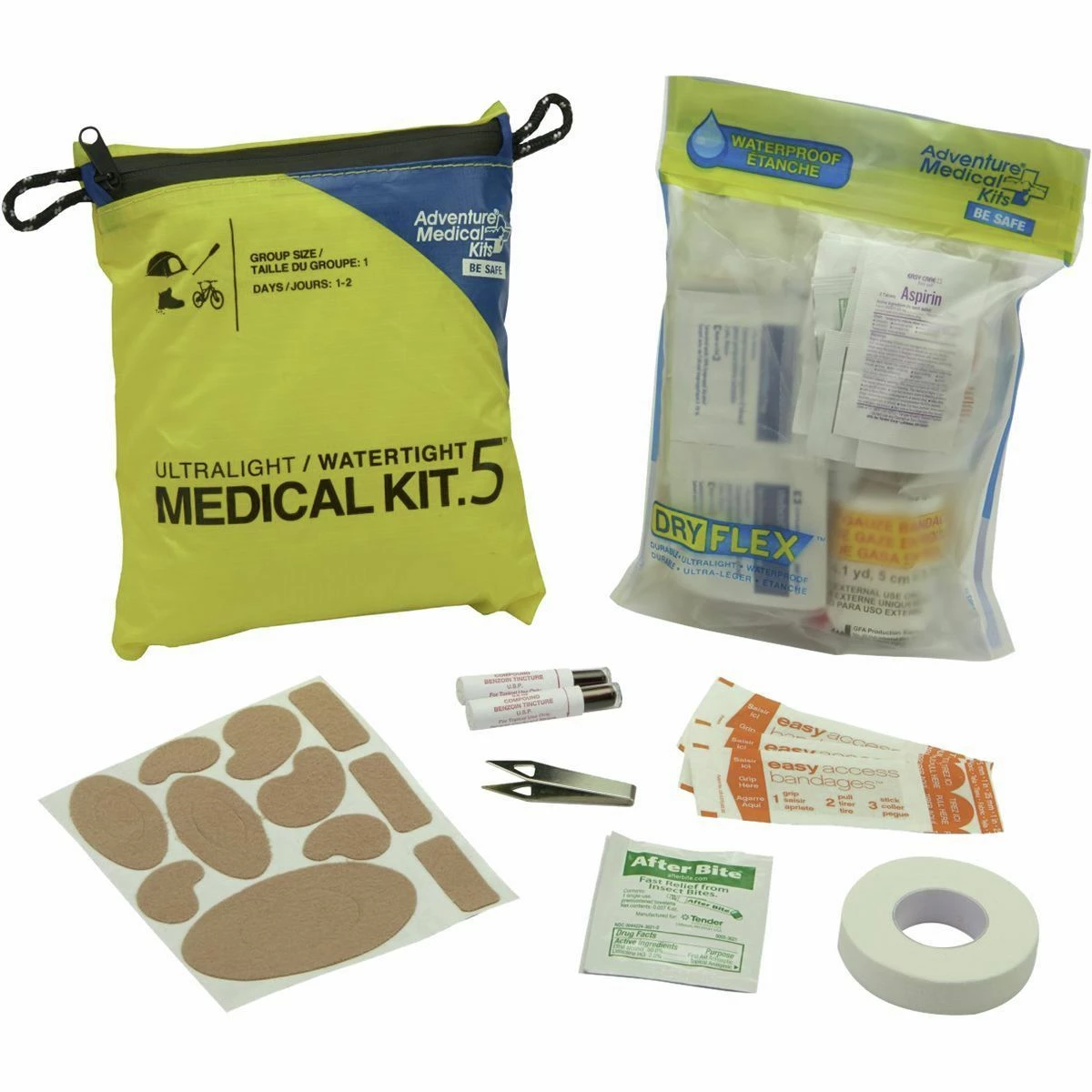 Adventure Medical’s Ultralight & Watertight Series consists of four differently sized medical kits specifically designed for multi-sport adventures that last anytime between a couple hours and four days. The largest and second largest (.9 and .7) kits accommodate four people on trips that last for four days, and the .5 and .3 sizes are suitable for solo trips lasting one to two days. Every kit contains bandages, instruments, medications, and treatments for burns, blisters, cuts, scars, headaches, broken bones, and other accidents that happen on paddling, mountain biking, and trekking trips.
