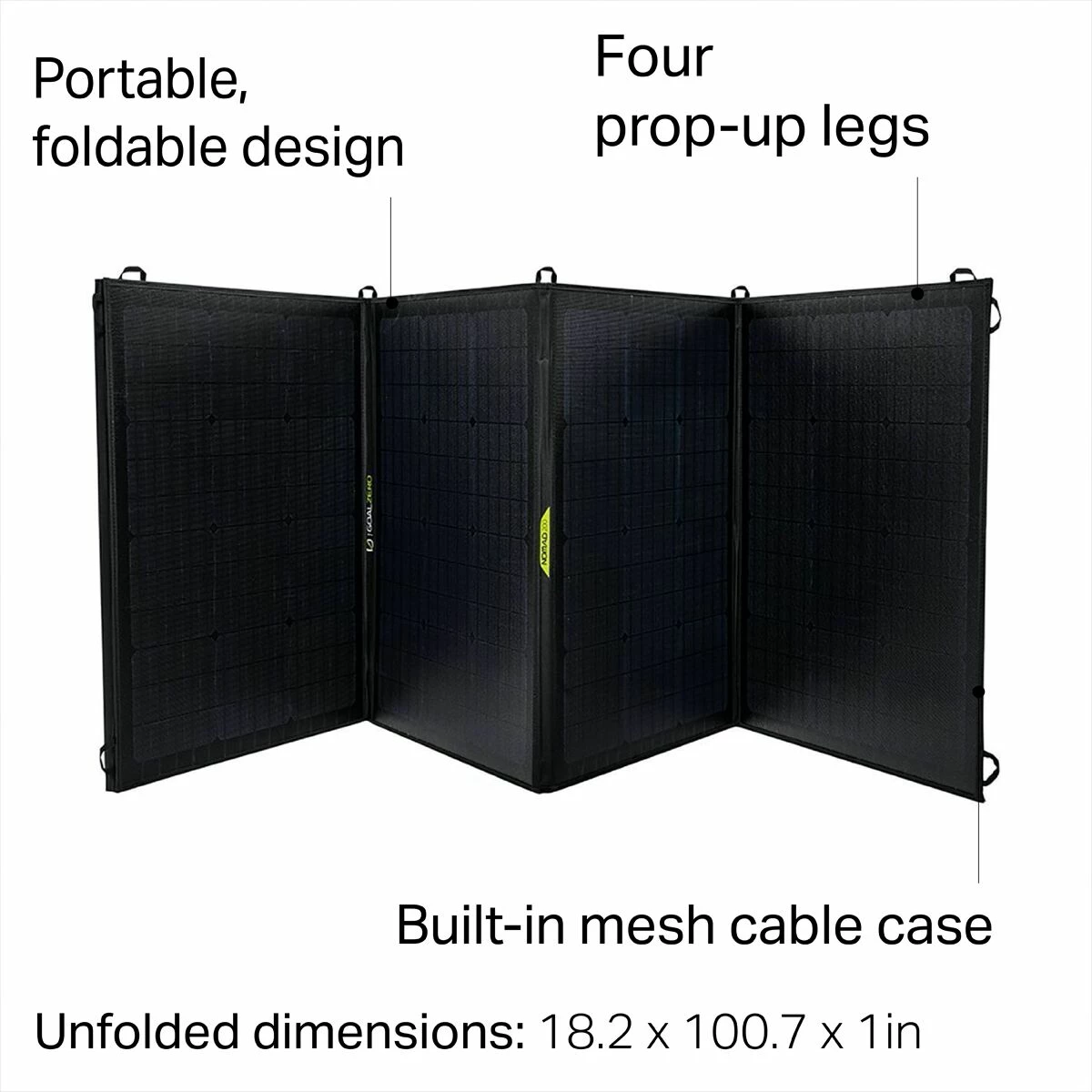 - Four legs prop up panels to receive direct sunlight
