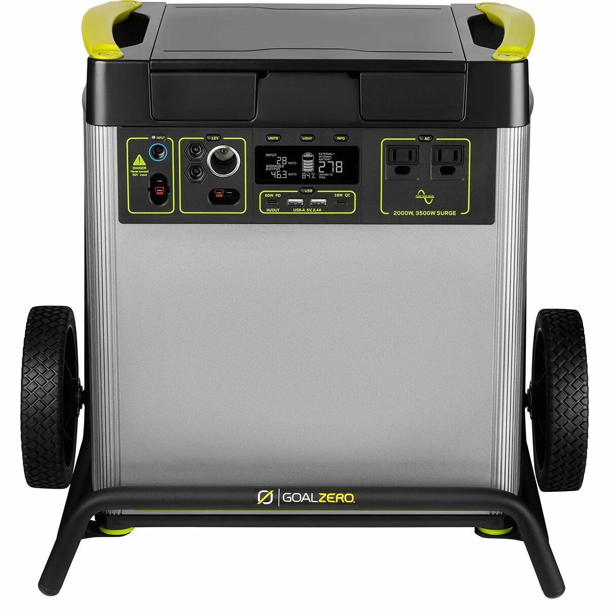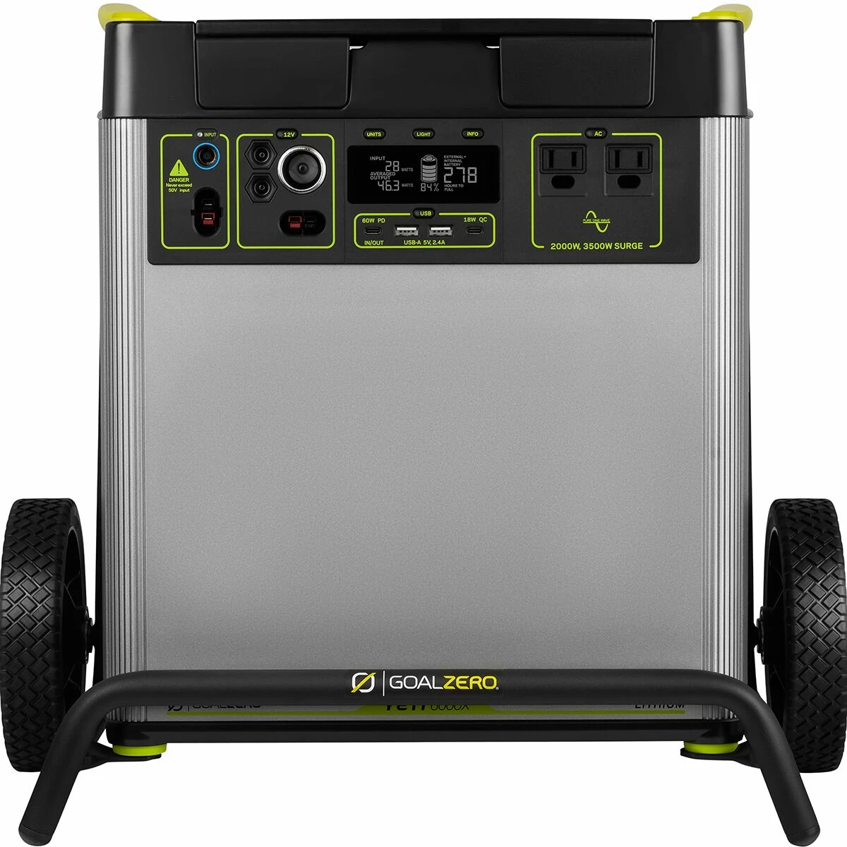 - Output: 2000 watts, (2x) 2.4A USB-A Port, 60W USB-C PD Port (Input/Output), 18W USB-C Port, 6mm 12V Ports, 12V Car Port, 12V Power Pole Port, 120V AC Inverter (2000W, 3500W surge)