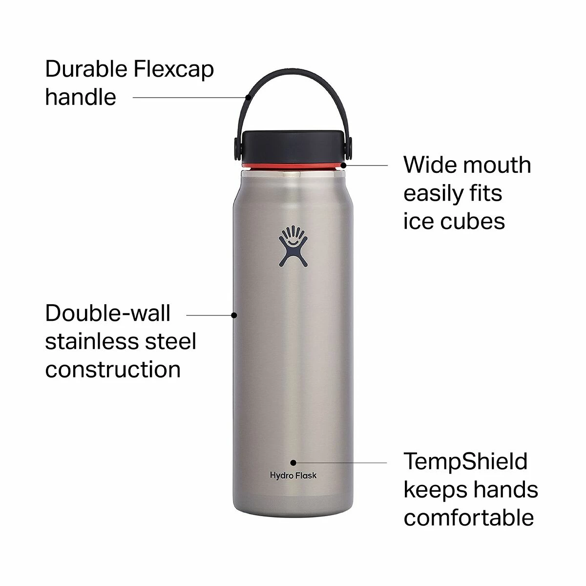 Built to keep you hydrated on the move, the Wide Mouth Trail Lightweight Water Bottle is 25% lighter than classic Hydro Flask bottles. Don’t worry, it is able to weigh less without sacrificing the insulated performance you have come to expect.